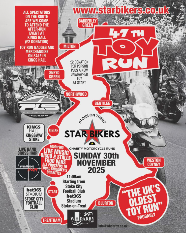 Jamie Porter, the PR and Digital Media Coordinator for the Star Bikers, said: "The Star Bikers Charity has been going for almost 50 years! We're currently on our 47th Toy Run and like last year, we need the community of Stoke-on-Trent and Staffordshire like never before.