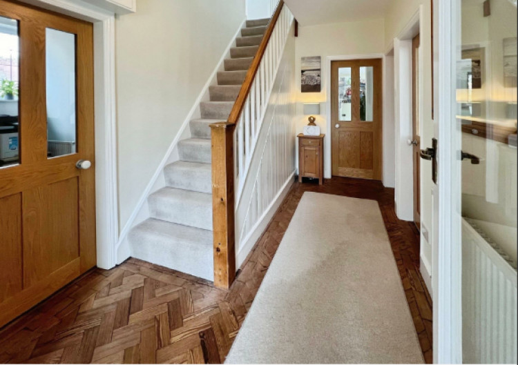 "The property also features two generous reception rooms, including a dual-aspect lounge with a charming multi-fuel burner, perfect for cosy evening and a dining room with original parquet flooring.