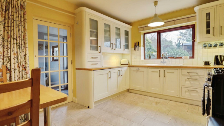 "The kitchen/breakfast room is both elegant and practical, offering a generous range of fitted units and expansive worktop space, making it ideal for modern family life and social gatherings.