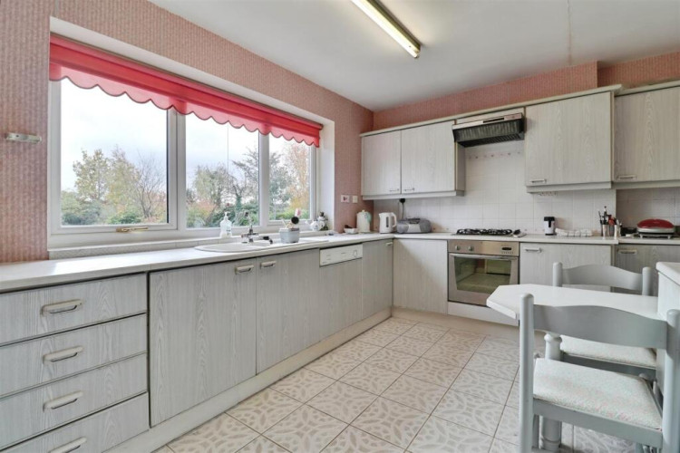 "At the rear of the hall is the kitchen, which leads through to a utility room, a downstairs W.C., and a sun room, offering additional space for storage or potential to extend the living area.